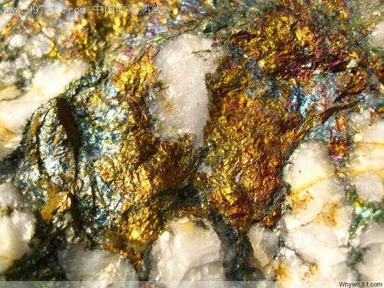 铜矿石一般是铜的硫化物或氧化物与其他矿物组成的集合体,已发现的含铜矿物有280多种,主要的只有16种。中国开采的主要是黄铜矿(铜与硫、铁的化合物),其次是辉铜矿和斑铜矿。