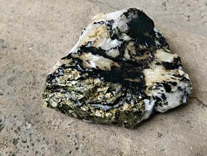 金矿石是具有足够含量黄金并可工业利用的矿物集合体,以化合物形式存在。金矿石的化合物大部分是造岩矿物,大都是随地下涌出的热泉通过岩石的缝细而沉淀积成,常与石英夹在岩石的缝隙中。只有少部分是以氯化物和硫酸盐存在于海水和盐湖水中。海水是金矿石取之不尽的来源,金矿石在海水中主要以氯化金矿石形式存在,1m³海水中大约含金矿石1.3kg。